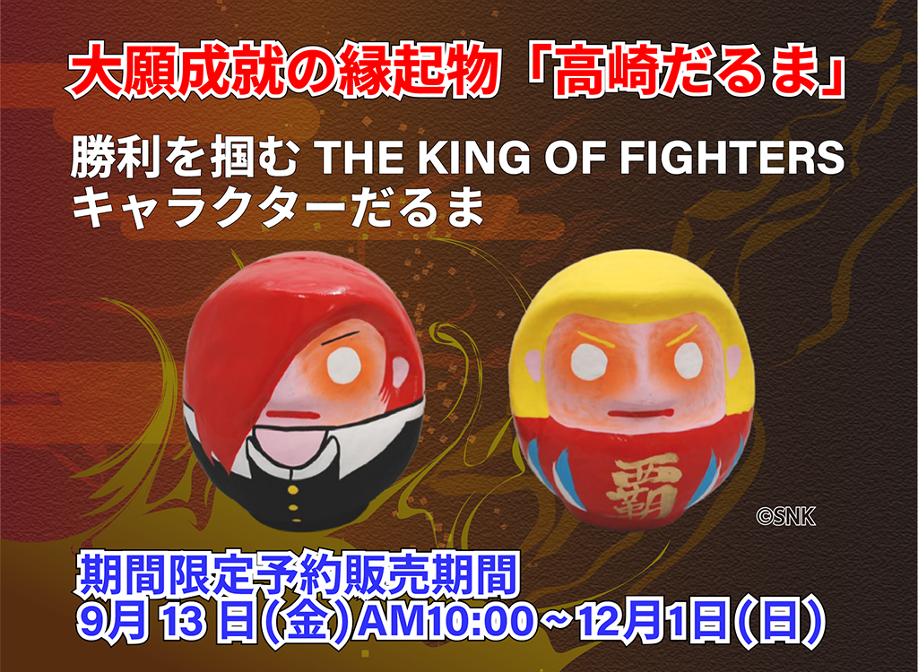 日本の伝統工芸品だるま。その生産量日本一を誇る高崎の『高崎だるま』と『 THE KING OF FIGHTERS 』のコラボ商品が登場。